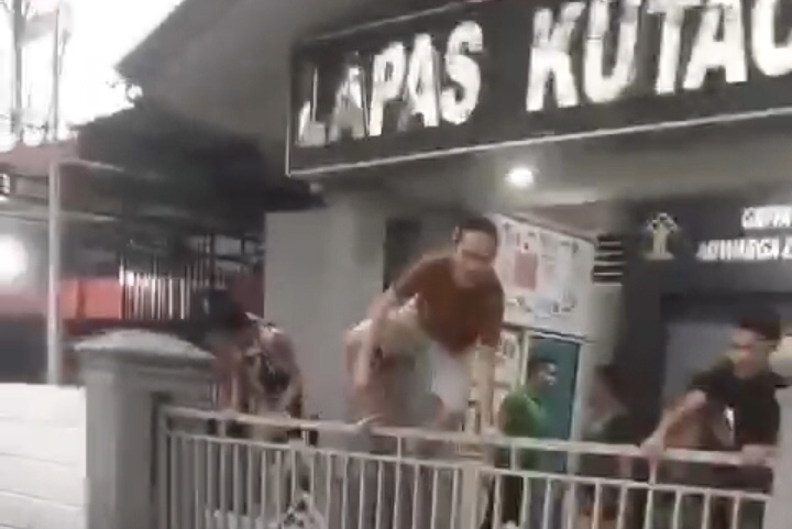 Aksi itu terekam dan beredar di media sosial. Beberapa napi yang kabur tidak mengenakan baju hanya memakai celana. Mereka lari ke arah warga yang sedang berada di lokasi.