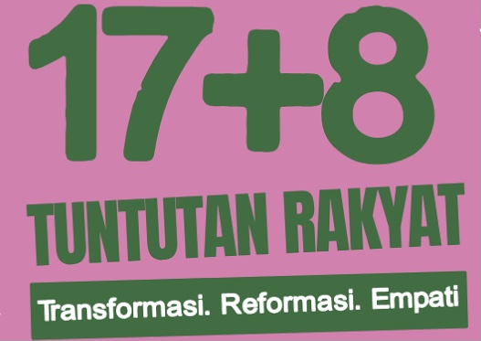 Koalisi sipil sebelumnya merumuskan 17+8 tuntutan merespons aksi unjuk rasa sepekan terakhir, melalui ‘17+8 tuntutan rakyat: transparansi, reformasi, dan empati’. Koalisi meminta 17 tuntutan segera dipenuhi dalam waktu sepekan hingga 5 September.