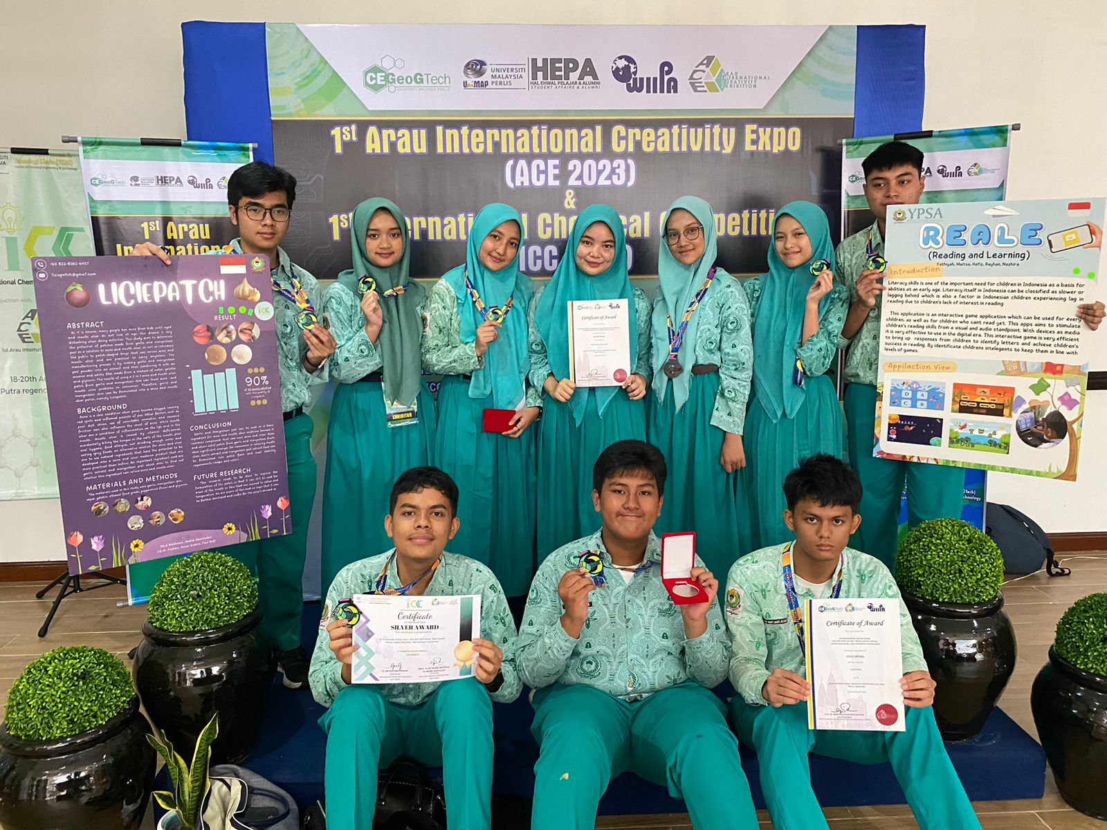 Tim SMA YPSA yang berhasil merebut medali di ajang ACE dan ICC di Malaysia/foto : ist BICARAINDONESIA-Medan : Prestasi kembali ditorehkan Tim SMA Yayasan Pendidikan Shafiyyatul Amaliyyah (YPSA), setelah mereka kembali meraih Medali Emas dan Perak dalam ajang Arau International Creativity Expo (ACE) 2023 & International Chemical Competition (ICC) 2023 pada tanggal 18-20 Agustus 2023 di The Putra Regency Hotel, Kangar, Perlis yang diselenggaran oleh World Intellectual Property Association (WIIPA), Center of Excellence Geopolymer and Green Technology (CEGeoGTech), and Universiti Malaysia Perlis.
