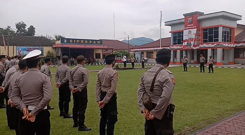 Kapolres Labuhanbatu AKBP Agus Darojat didampingi Wakapolres saat memberikan arahan pada apel persiapan pengamanan aksi tolak RUU HIP/foto : aji BICARAINDONESIA-Labuhanbatu : Guna mengantisipasi kerawanan yang menganggu kondusifitas keamanan ketertiban di tengah masyarakat, Polres Labuhanbatu menyiagakan 160 personel untuk mengantisipasi aksi demo.