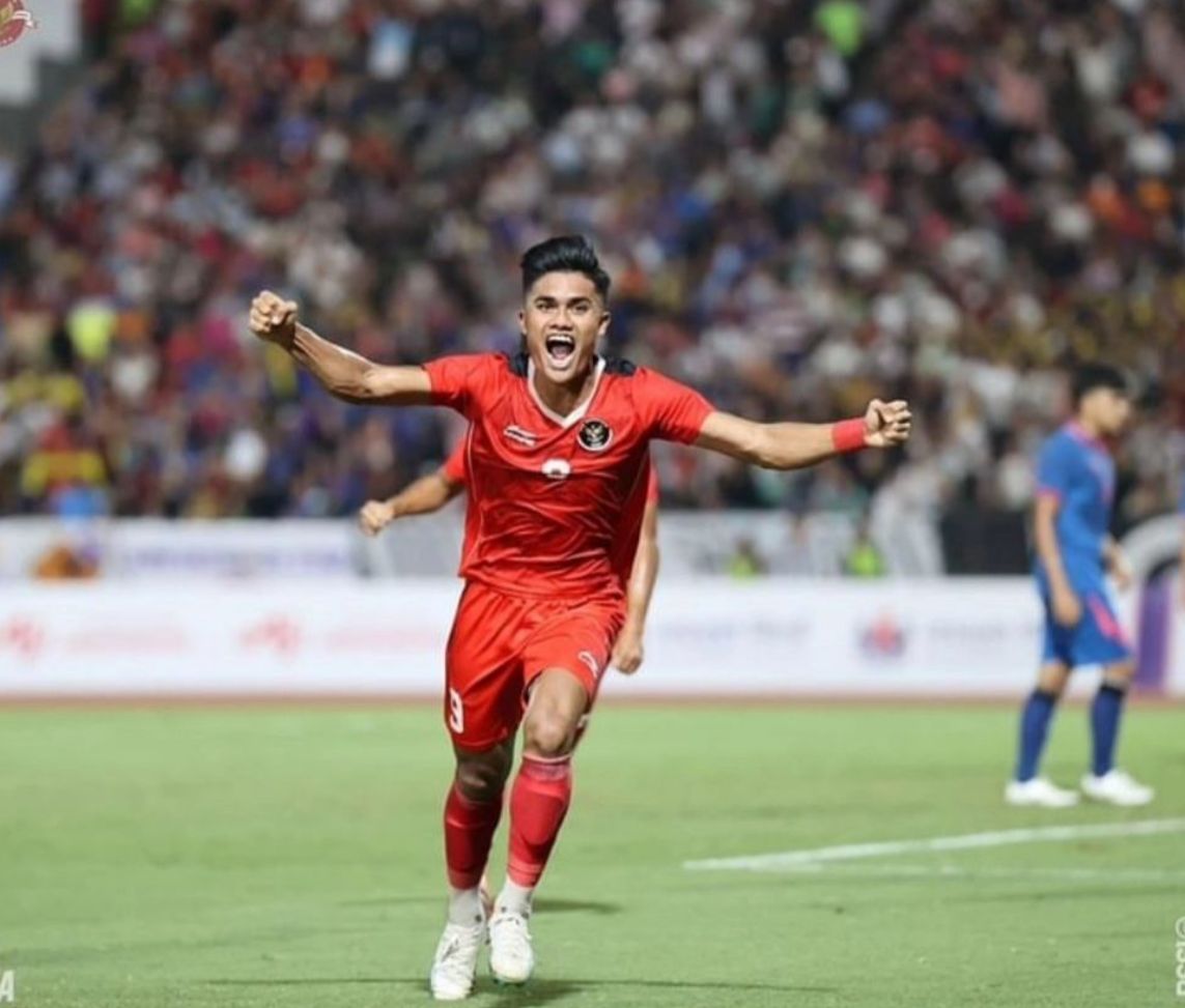 Pemain andalan Timnas Indonesia U-22 Ramadan Sananta melakukan selebrasi usai menjebol gawang Thailand di final sepakbola SEA Games 2023/foto : IG Irfanmaulana BICARAINDONESIA-Phnom Penh : Penantian panjang Indonesia selama 32 tahun akhirnya terobati saat Timnas U-22 berhasil menjuarai final sepakbola SEA Games 2023 dalam laga yang berlangsung di Stadion Olimpiade, Phnom Penh, Kamboja, Selasa (16/5/2023).