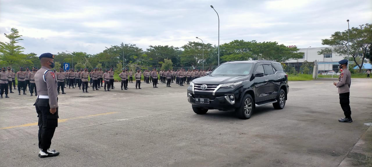Dipimpin Wakapolda Sumut Brigjen Dr H Dadang Hartanto, SH, SIK, MSi, sebanyak 4 SSK personel Brimob Polda Sumut terlebih dahulu melaksanakan apel pemberangkatan menuju Jakarta dari Bandara Cargo Internasional Kualanamu.
