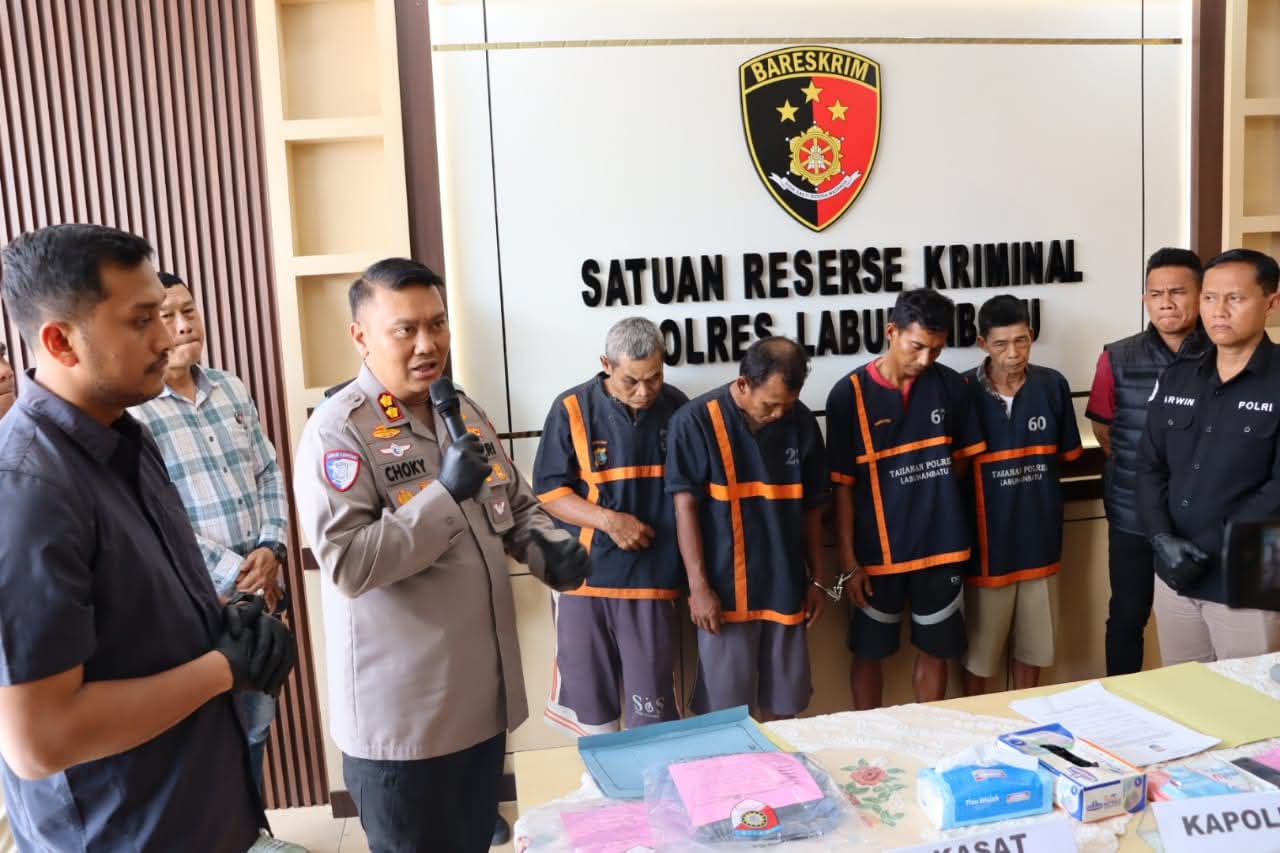 “Kasus ini terkuak setelah 4 pelaku yang salah satunya ayah kandung korban berhasil kami gulung dan ditetapkan sebagai tersangka oleh unit Perlindungan Perempuan dan Anak (UPPA) Satuan Reserse Kriminal (Satreskrim) Polres Labuhanbatu pada 27 September 2025 lalu,” ungkap Kapolres Labuhanbatu AKBP Choky Sentosa Meliala didampingi Kasatreskrim AKP Teuku Rivandi didampingi Plt Kasi Humas Iptu Arwin saat gelar konferensi pers di Mapolres Labuhanbatu, Kamis (2/10/2025).