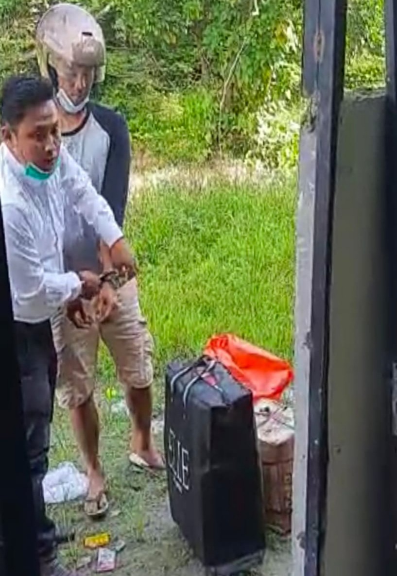 Aksi tunggal Bripka Study Ono saat meringkus 2 terduga pelaku pemasok ganja 15 Kg/foto : ist