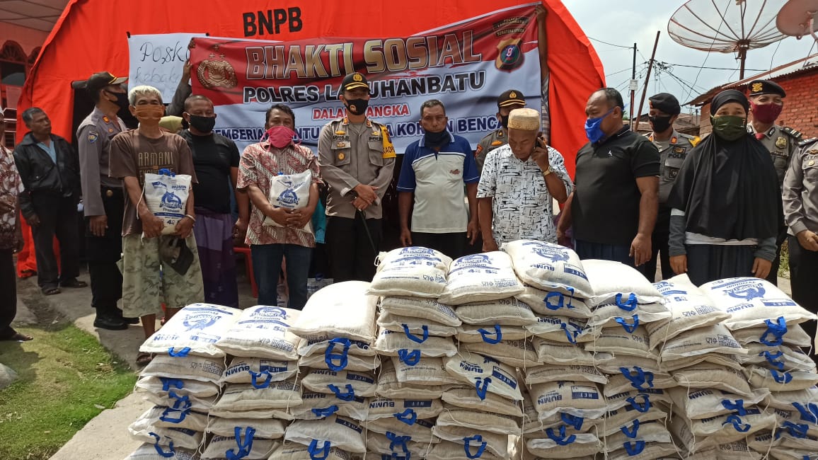 Dalam kunjungan itu, Kapolres menyerahkan 500 Kg beras kepada para korban kebakaran, yang diterima langsung oleh para korban.