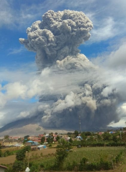 Erupsi dahsyat gunung api Sinabung yang terekam Pos Pengamatan PVMBG/foto : ist BICARAINDONESIA-Karo : Setelah beberapa kali erupsi pada akhir pekan lalu, Gunung Api Sinabung di Kab. Karo, Sumatera Utara, kembali meletus dahsyat pada Senin pagi (10/8/2020).