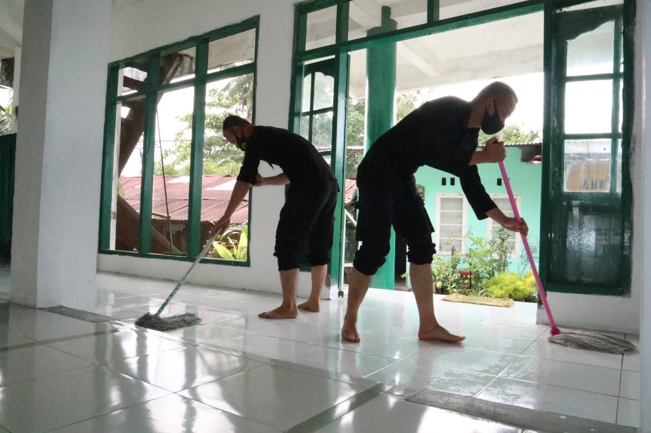 Bakti sosial itu meliputi pembersihan rumah ibadah dan juga pemberian alat kebersihan yang diserahkan langsung kepada pengurus rumah ibadah.