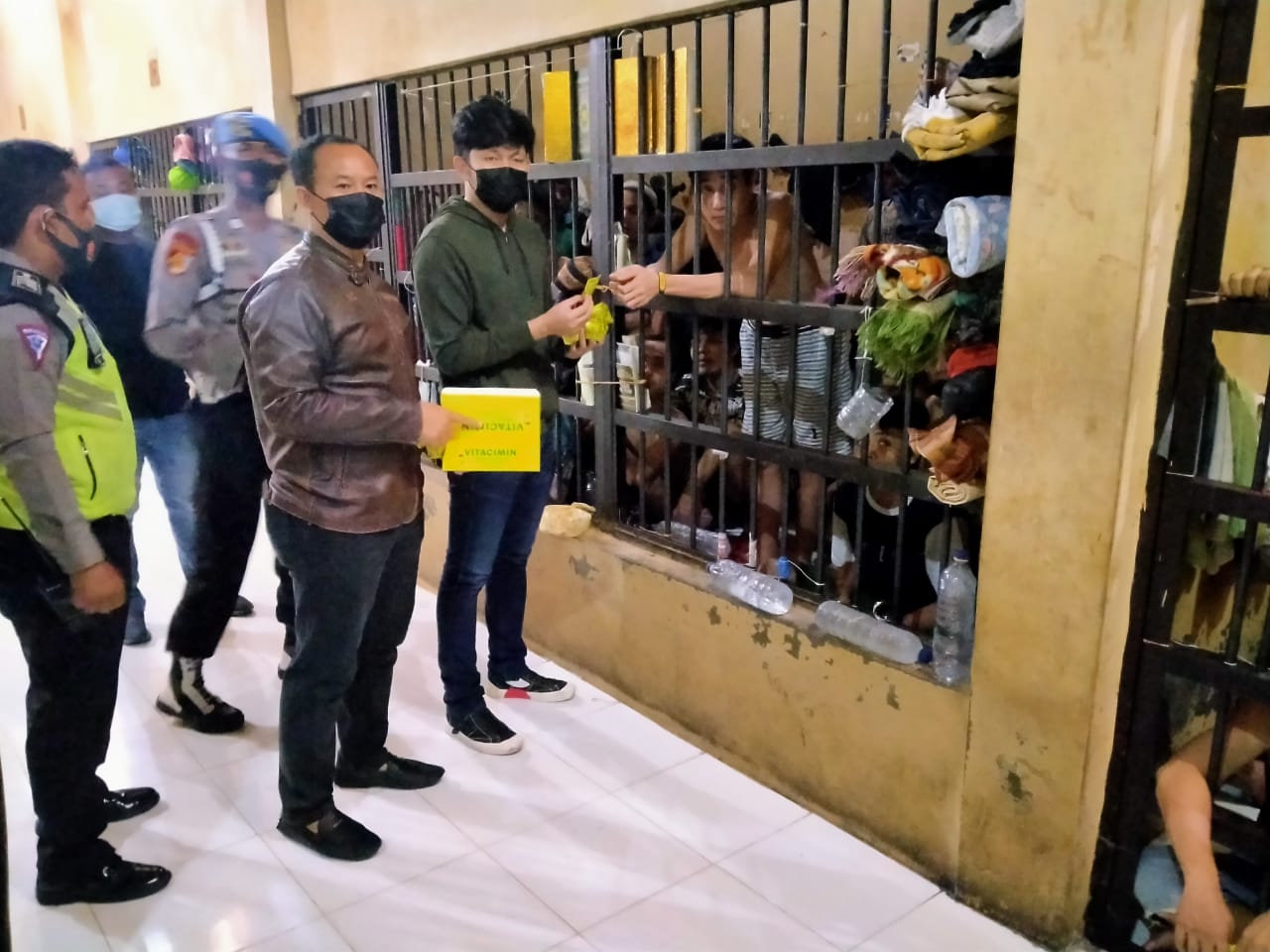 Dipimpin Pawas Kasatresnarkoba AKP Martualesi Sitepu, didampingi Padal Ipda Tito Alhafezt Kanit 2 Satresnarkoba dan Ipda Sumardi, Kanit Patroli Satlantas, proses pemberian vitamin kepada seluruh tahanan yang menjalani hukuman di RTP Polres Labuhanbatu usai pelaksanaan apel malam piket fungsi jajaran Satuan Polres pada Sabtu (5/12) Malam