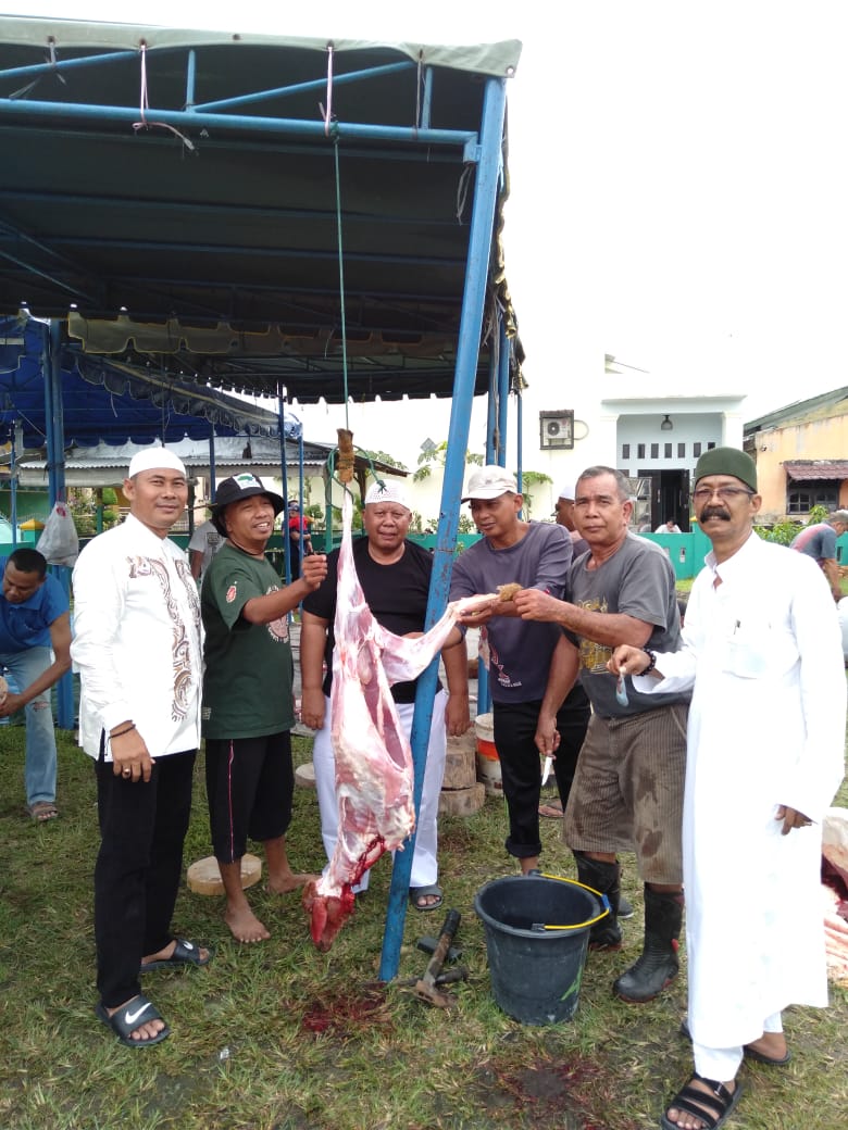 Usai salat, warga perumahan ini menyembelih 4 ekor lembu dan 3 ekor kambing. Salah seorang peserta kurban, Devi Maharani Sembiring mengaku senang bisa menjalankan amalan yang sangat dianjurkan oleh Allah yakni menyembelih hewan kurban.