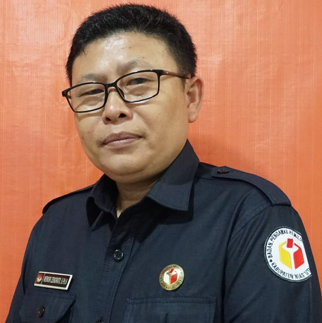 Ketua Bawaslu Nias Utara, Memori Zendrato./Foto : Ist BICARAINDONESIA-Nias Utara : Terkait instruksi KPU Nias Utara yang menghentikan penempelan stiker coklit di rumah warga, dengan pendataan pemilih tetap berjalan, dinilai berpotensi terjadinya pelanggaran prosedur.