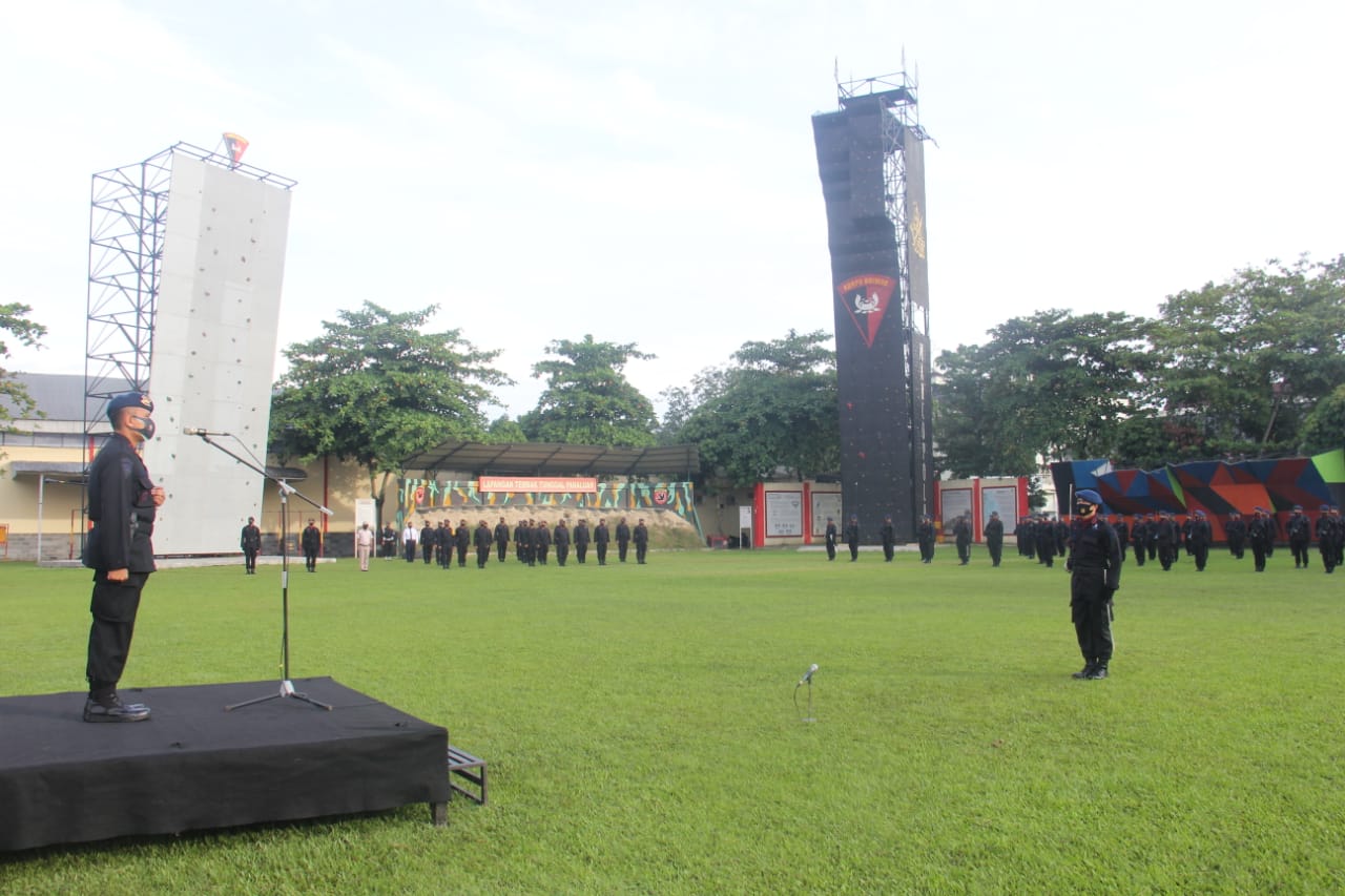 Bertindak selaku inspektur upacara Komandan Batalyon A Pelopor Sat Brimob Polda Sumut Kompol Bernhard L Malau,SIK.