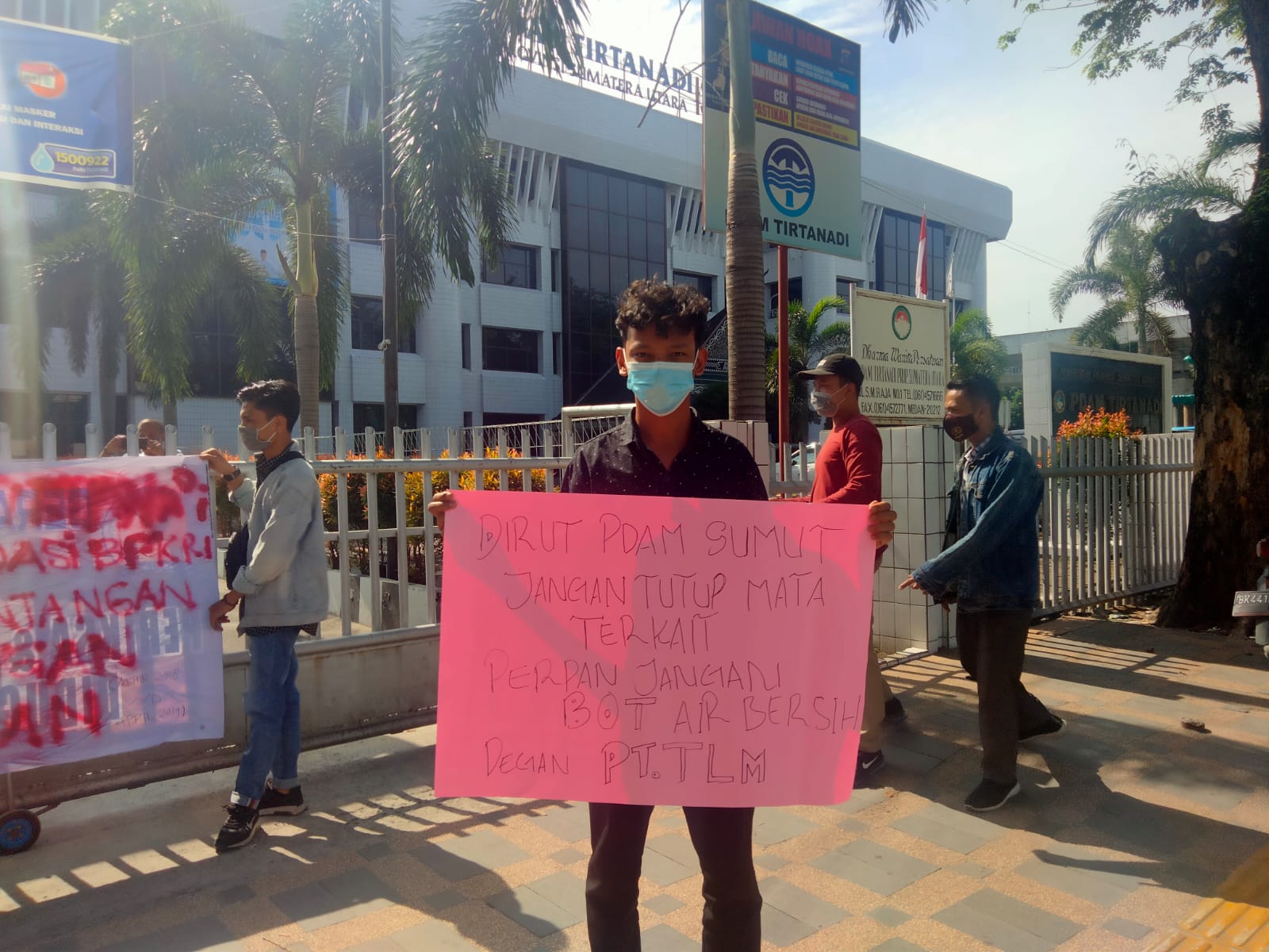 Dalam aksi itu, demonstran mendesak polisi mengusut tuntas temuan BPK-RI tahun 2018 terkait kasus dugaan korupsi perpanjangan BOT air minum PDAM Tirtanadi dengan PT. Tirta Lyonisse Medan (TLM).