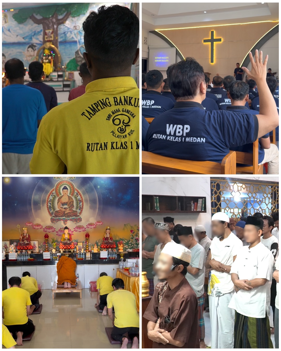 Di tengah keterbatasan ruang gerak, para warga binaan tampak terus mendekatkan diri ke sang pencipta sesuai ajaran masing-masing dan pihak Rutan Kelas I Medan memfasilitasinya dengan rumah ibadah/foto: ist BICARAINDONESIA-Medan: Di balik tembok Rutan Kelas I Medan, beragam persoalan psikologis dan sosial kerap muncul. Mulai dari tekanan mental akibat perubahan lingkungan, kesulitan mengendalikan emosi, hingga tantangan beradaptasi dengan pola hidup yang serba terbatas.