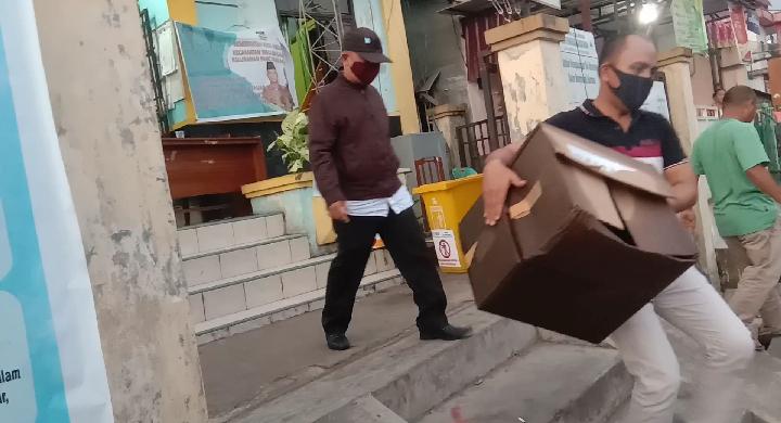 Tidak tau apa yang dibicarakan di dalam kantor Lurah Pancuran Bambu, tiba-tiba Polisi keluar membawa kardus dan Lurah ke mobil dan dibawa menuju Polres Sibolga.