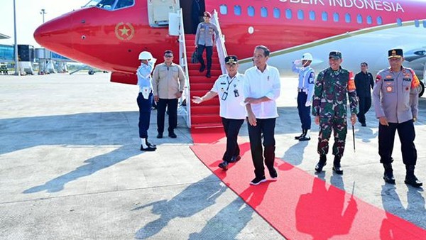 Jokowi beserta rombongan terbatas telah tiba di Bandara Internasional Aji Pangeran Tumenggung Pranoto, Kota Samarinda sekitar pukul 16.00 WITA.
