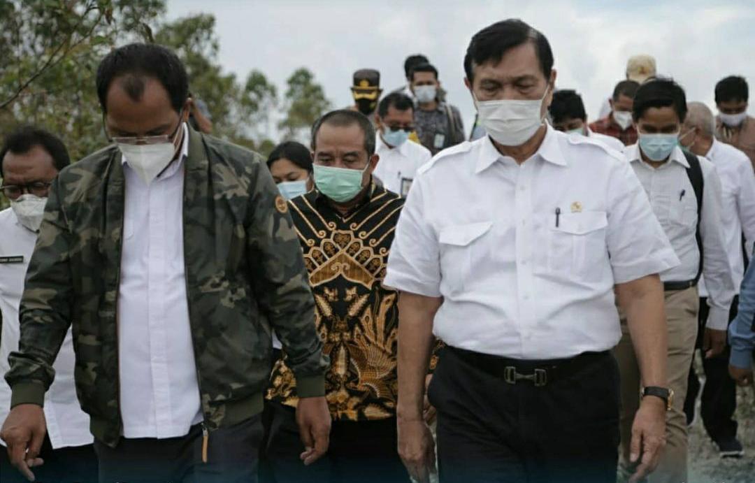 GM PLN UIW Sumatera Utara, M Irwansyah Putra tampak mendampingi Menko Bidang Kemaritiman dan Investasi, Luhut B Pandjaitan saat melakukan kunjungan sekaligus pemantauan lokasi Food Estate di Humbahas/foto : ist