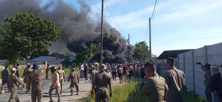 BICARAINDONESIA-Deliserdang : Eks lahan PTPN di Jalan H. Anif, Desa Sampali, Kecamatan Percut Sei Tuan, Deliserdang, Sumatera Utara, berujung ricuh. Warga yang mengetahui alat berat untuk merobohkan bangunan di atas lahan, langsung melakukan pemblokiran lalan dengan membakar ban.