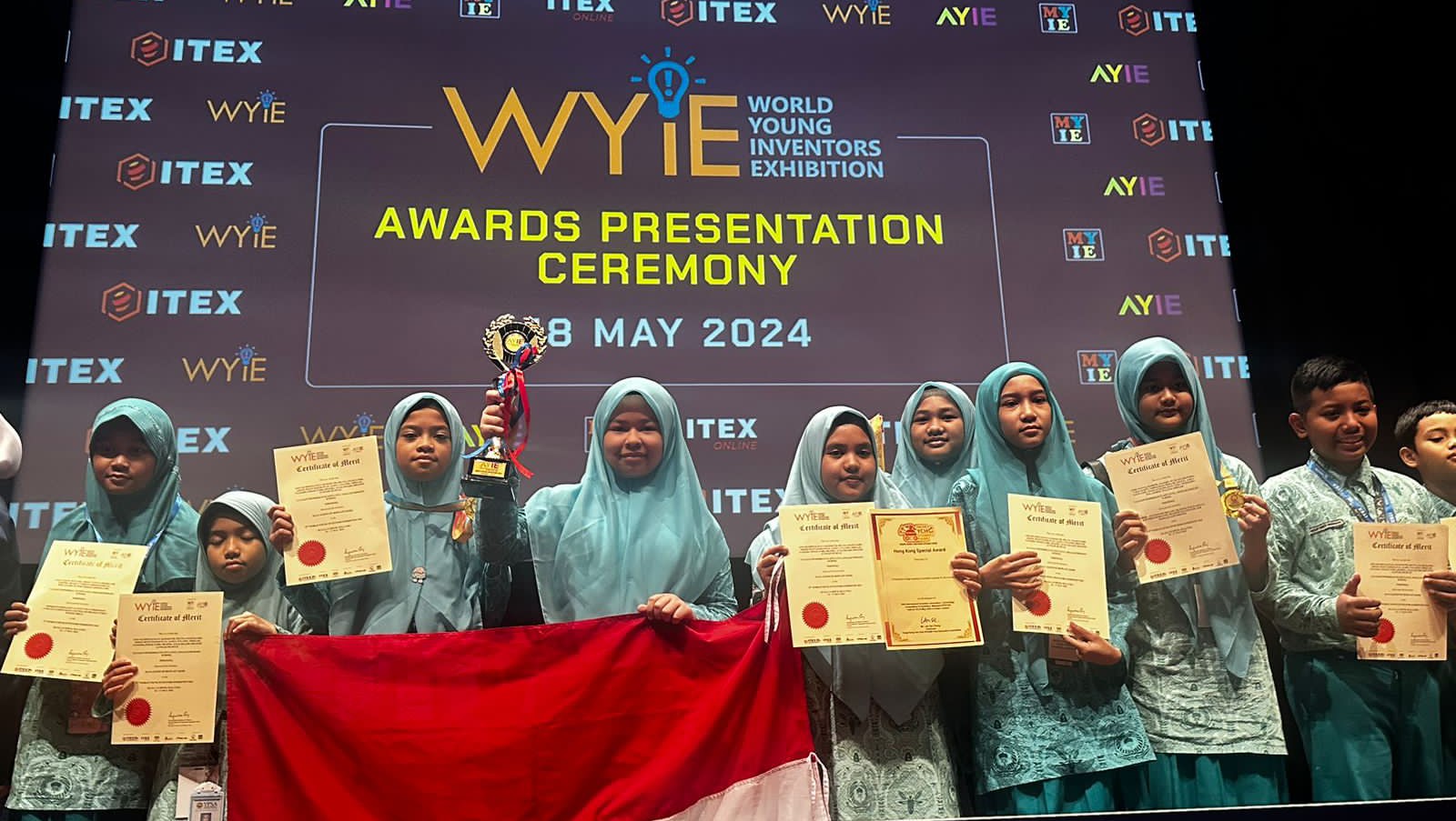 Para peneliti SD YPSA yang berhasil merebut 3 medali emas di ajang WYIE 2024 di Malaysia/foto : ist BICARAINDONESIA-Malaysia : Para peneliti cilik dari SD Yayasan Pendidikan Shafiyyatul Amaliyyah (YPSA) berhasil meraih 3 medali emas dalam event World Young Inventors Exhibition (WYIE) 2024 yang berlangsung pada 16-18 Mei 2024 di Kuala Lumpur Convention Center (KLCC), Malaysia.