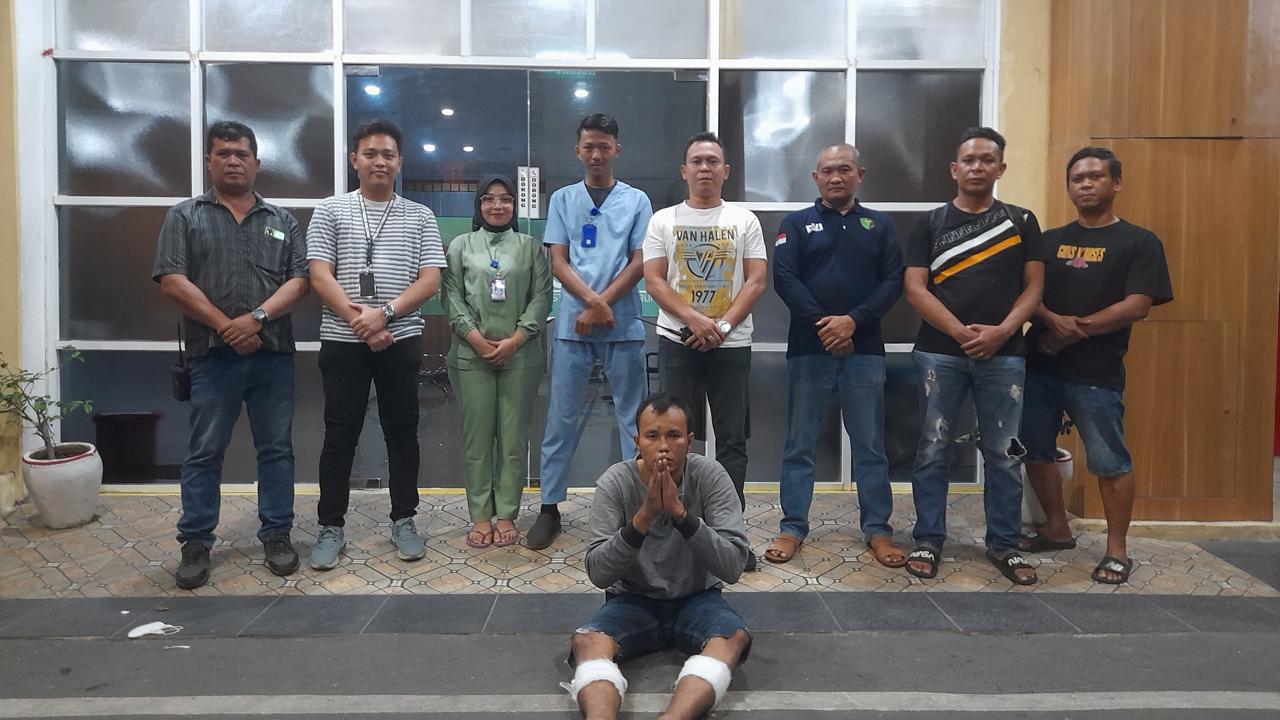 Tim Unit Reskrim Polsek Medan Baru bersama tersangka usa menjalani perawatan di RS Bhayangkara Medan/foto: ist BICARAINDONESIA-Medan: Hairy Fadli Rambe alias Rambe hanya bisa meringis menahan sakit, setelah kedua kakinya ditembus timah panas yang disarangkan tim Unit Reskrim Polsek Medan Baru.