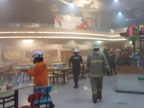 Api sempat terlihat dari luar sisi timur bangunan mal. Saat ini, petugas pemadaman kebakaran sudah di lokasi untuk menjinakkan api.