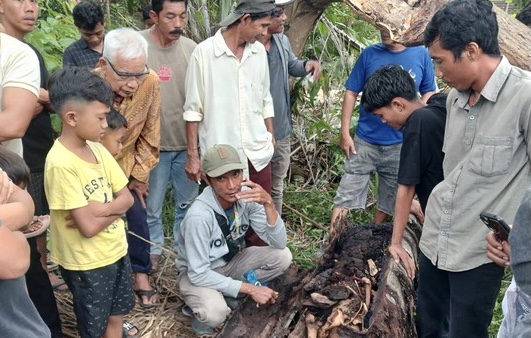 “Beneran (ditemukan) di dalam pohon aren, cuman tinggal tunggal belulang, ditemukannya tadi,” ujar Ahmad saat dikonfirmasi.