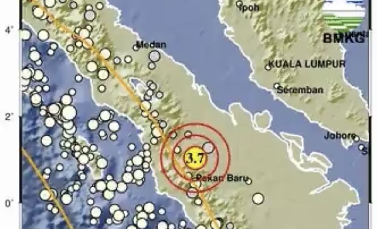 Menurut data Badan Meteorologi Klimatologi dan Geofisika (BMKG) melaporkan bahwa gempa tersebut berpusat di darat. Lokasi gempa berada pada koordinat 1,04 lintang utara, dan 100,02 bujur timur.