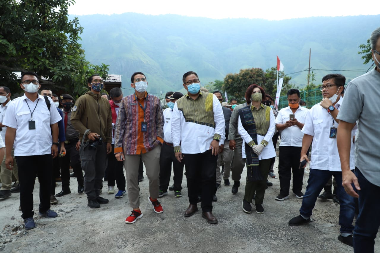 Menparekraf Sandiaga S Uno saat menghadiri pencanangan Kampung Ulos di Desa Silalahi, Dairi/foto : ist BICARAINDONESIA-Silalahi : Menteri Pariwisata dan Ekonomi kreatif (Menparekraf) Sandiaga Solahudin Uno, menghadiri pencanangan Kampung ulos di Desa Silalahi, Kecamatan Silahisabungan, Jum’at (19/2/2021). Tampak mendampinginya Bupati Dairi Eddy Keleng Ate Berutu dan Anggota DPR RI Hinca Pandjaitan.