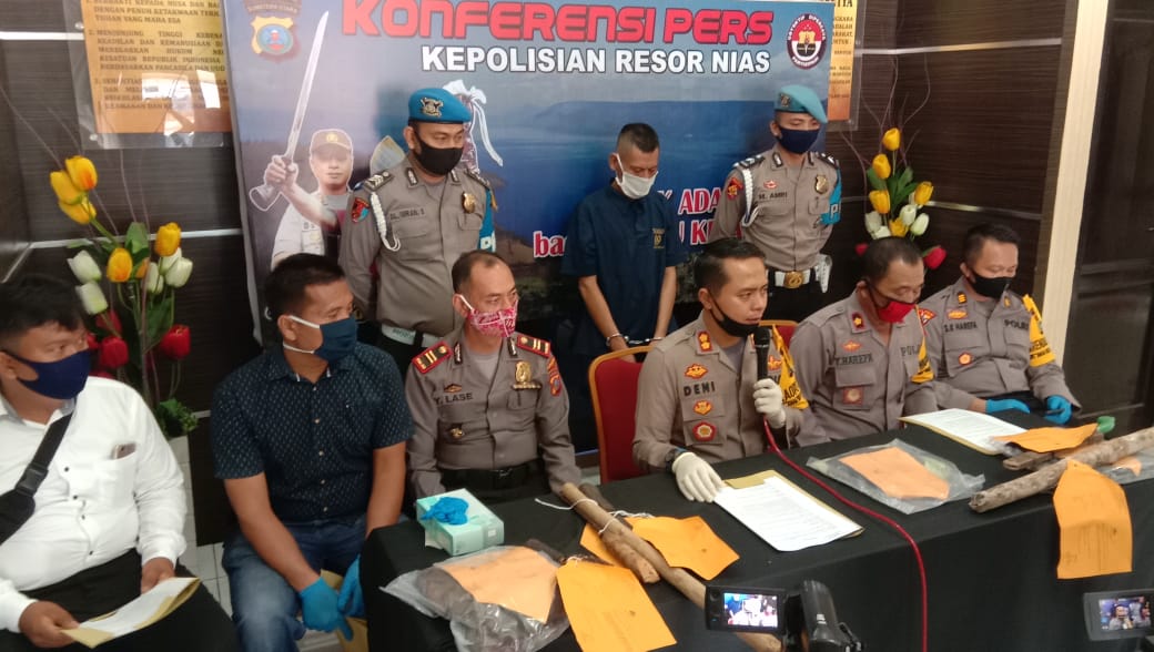 “Usai membunuh korban, tersangka menelepon dan mendatangi rumah Kepala Dusun (Kadus) yang kemudian menceritakan peristiwa yang ia lakukan dengan niat menyerahkan diri saja ke polisi,” ujar AKBP Deni Kurniawan saat menggelar konferensi pers didampingi Wakapolres Nias, Kabag Ops, Kasatreskrim dan Kapolsek Idanögawo. Sabtu, (27/6/2020).