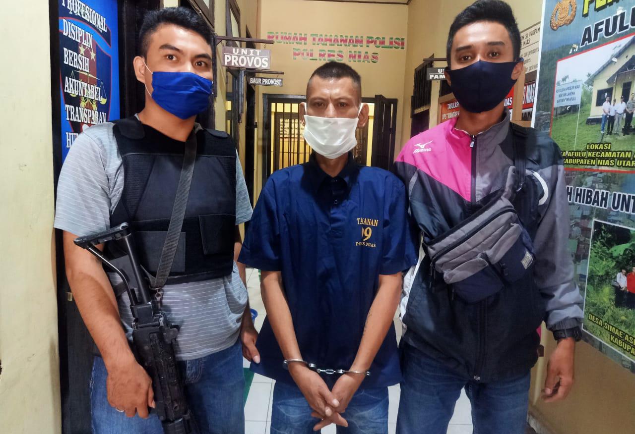 Tersangka YL saat digelandang ke sel Mapolres Nias/foto : ega