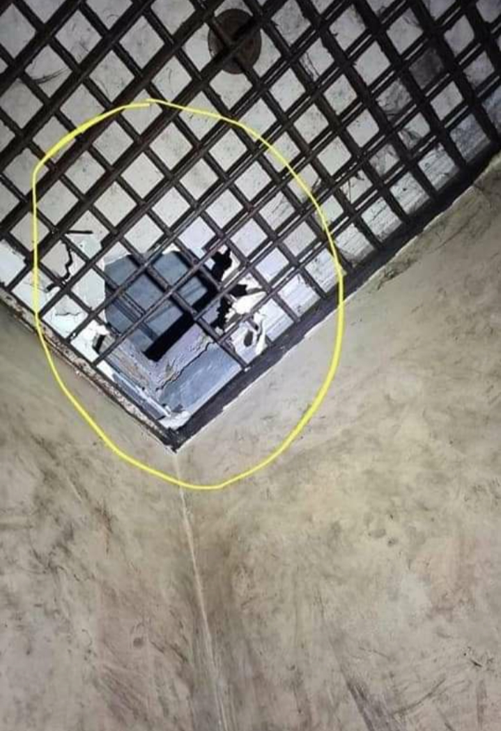 Kondisi teralis yang digergaji dan plafon dirusak yang menjadi pintu kaburnya 8 tahanan Polres Sergai/foto : ist