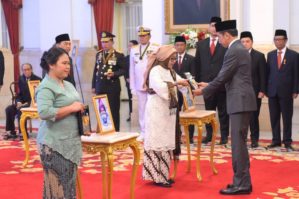 Gelar tersebut diberikan langsung oleh Presiden Joko Widodo (Jokowi) kepada perwakilan keluarga yang hadir dari tiap-tiap tokoh.