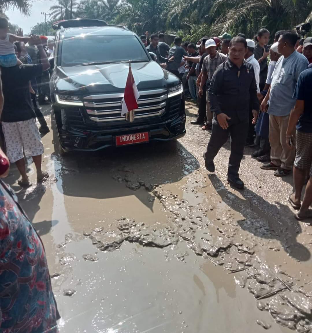 Jalan yang disambangi Jokowi itu terlihat rusak parah. Saat berada di Desa Sialang Taji, ia pun sempat turun dari Toyota Land Cruiser berpelat ‘Indonesia 1’.