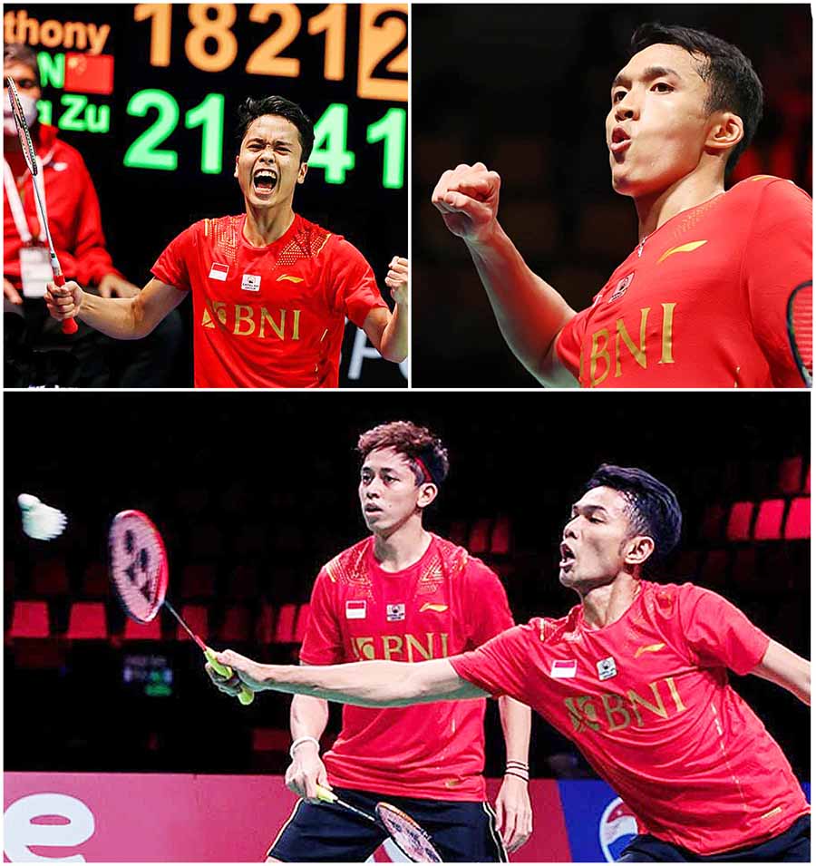 Tiga pahlawan Indonesia, Anthony Sinisuka Ginting Indonesia, Fajar Alfian/Muhammad Rian Ardianto dan Jonatan Christie, ketiganya berhasil memastikan kembalinya Piala Thomas kepangkuan ibu pertiwi./Ist