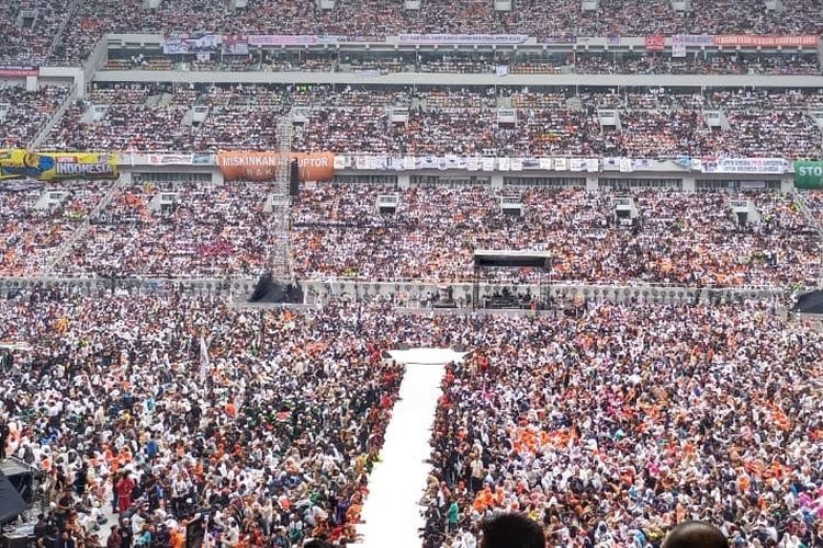 BICARAINDONESIA-Jakarta : Kampanye akbar pasangan calon presiden (capres) nomor urut 1 Anies Baswedan dan Muhaimin Iskandar (Amin) dipadati massa. Terpantau, Jakarta Internasional Stadium (JIS) yang berkapasitas 82.000 tempat duduk telah penuh, Sabtu (10/2/2024).