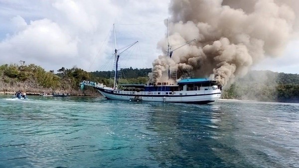 Kapal Pesiar Indo Siren Terbakar di Perairan Raja Ampat, 20 Penumpang Dievakuasi
