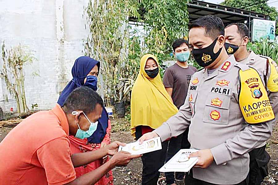 Kapolres Labuhanbatu AKBP Deni Kurniawan saat memberikan santunan kepada korban kebakaran./Ist BICARAINDONESIA-Labuhanbatu : Kapolres Labuhanbatu, AKBP Deni Kurniawan memberikan bantuan kepada korban kebakaran yang terjadi, Rabu (21/7/2021) malam kemarin sekira pukul 21.30 wib.