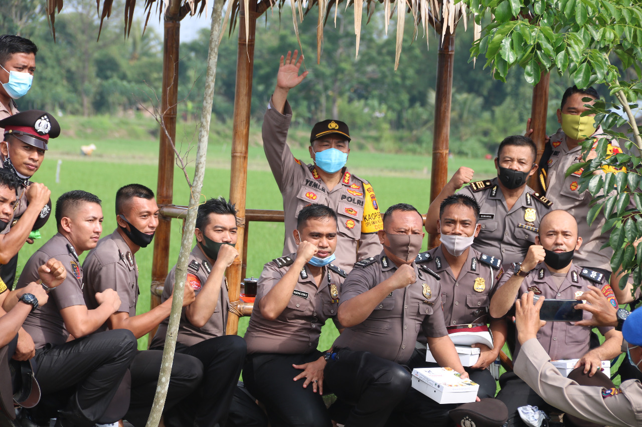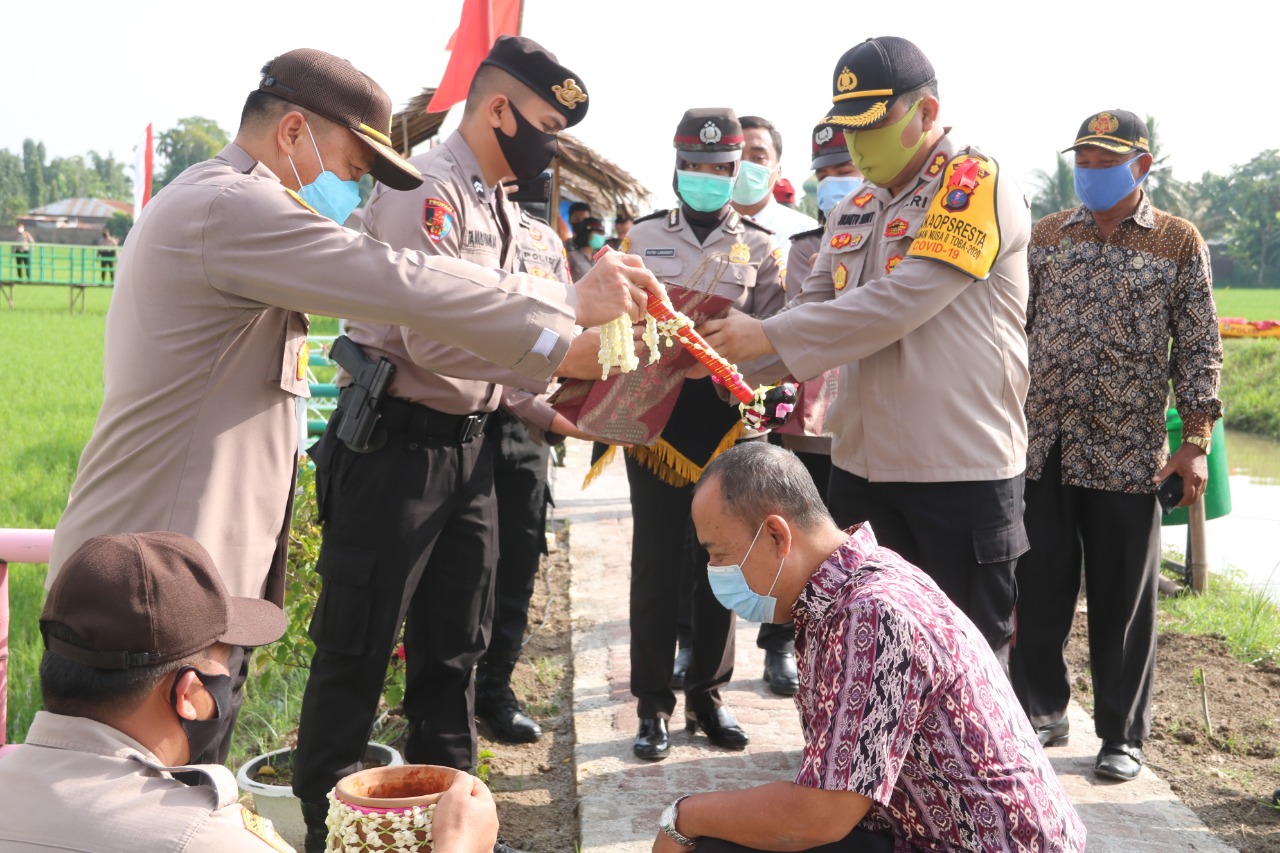 Tradisi penyiraman air bunga oleh Kapolresta Deliserdang Kombes Yemi Mandagi sebagai tradisi bagi personel Polresra Deliserdang yang mendapat kenaikan pangkat/foto : nyak BICARAINDONESIA-Deliserdang : Setelah diresmikan langsung oleh Kapolda Sumut pada Rabu, 24 Juni 2020 lalu sebagai Kampung Paten dalam mendukung Katahanan Pangan, nama Desa Pundenrejo pun mulai di tengah masyarakat baik tua, muda dan remaja.