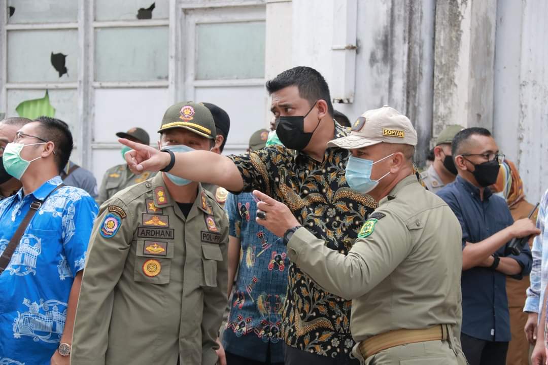 Walikota Medan Bobby Afif Nasution memimpin proses pembongkaran 4 unit bangunan berlantai 3 di Jalan Ahmad Yani VII Sudut Jalan HAR Syihab Kelurahan Kesawan Kecamatan Medan Barat/foto : ist