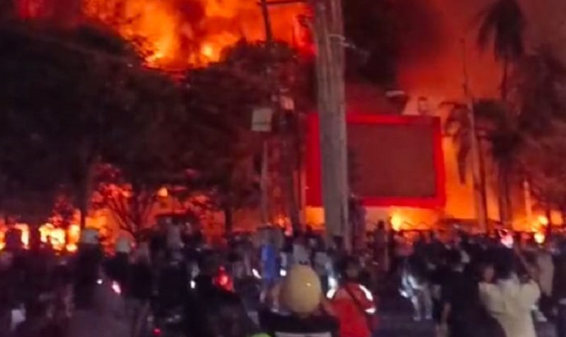 Kobaran api membakar gedung DPRD Kota Makassar setelah menyusul terjadinya amuk massa/foto: ist