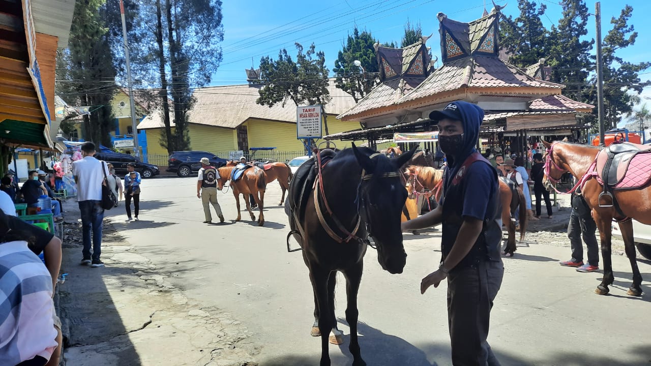 Pasar Buah yang menyediakan buah segar dan sewa kuda atau delman di Brastagi, Karo, tampak disesaki wisatawan sehari pasca kabupaten itu ditetapkan GTPP Covid-19 Sumut sebagai salahsatu kawasan zona merah/foto : dis BICARAINDONESIA-Karo : Sama halnya dengan Medan dan Deliserdang, Gugus Tugas Percepatan Penanganan (GTPP) Covid-19 Sumatera Utara juga telah menetapkan Kab. Karo sebagai salahsatu kawasan zona merah Virus Corona.