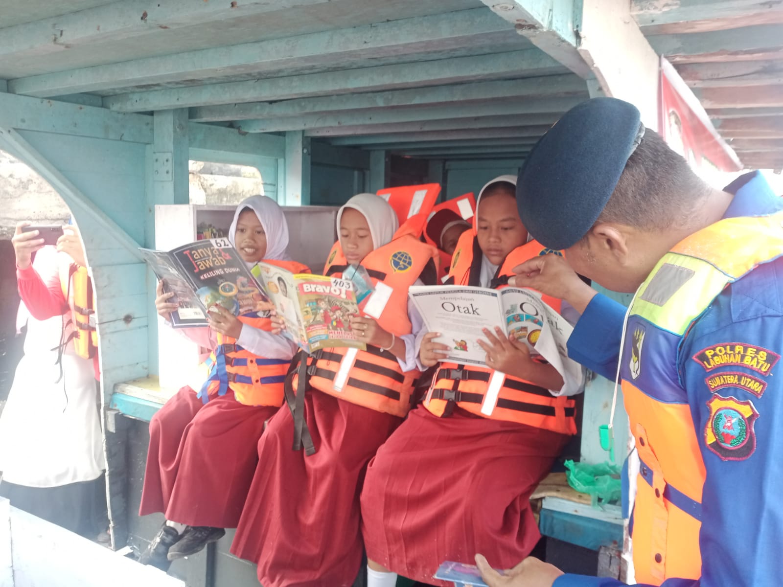 Ribuan koleksi buku pelajaran sekolah hingga komik disiapkan Polres Labuhanbatu di perpustakaan terapung yang dikhususkan bagi para pelajar di daerah pesisir yang berada di Dermaga Pelabuhan Syahbandar, Lingkungan Satu, Kelurahan Sei Berombang, Kecamatan Panai Hilir, Kabupaten Labuhanbatu, Sumatera Utara.