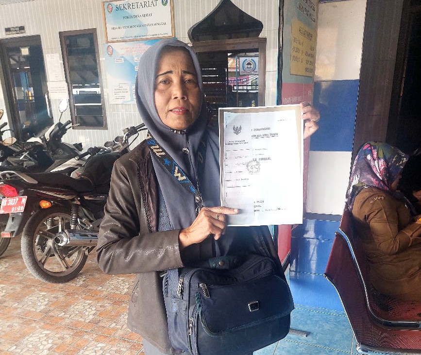 Sisniar, istri pertama Hasbullah menunjukkan dokumen tanah yang diduga kini ditahan Kades Sei Mencirim/foto: ist BICARAINDONESIA-Sunggal: Oknum Kepala Desa (Kades) Sei Mencirim, Kecamatan Sunggal, Kabupaten Sunggal berinisial SS, mendadak jadi sorotan. Hal itu terjadi setelah yang bersangkutan diduga menahan surat tanah dan rumah milik warga tanpa dasar hukum yang jelas.