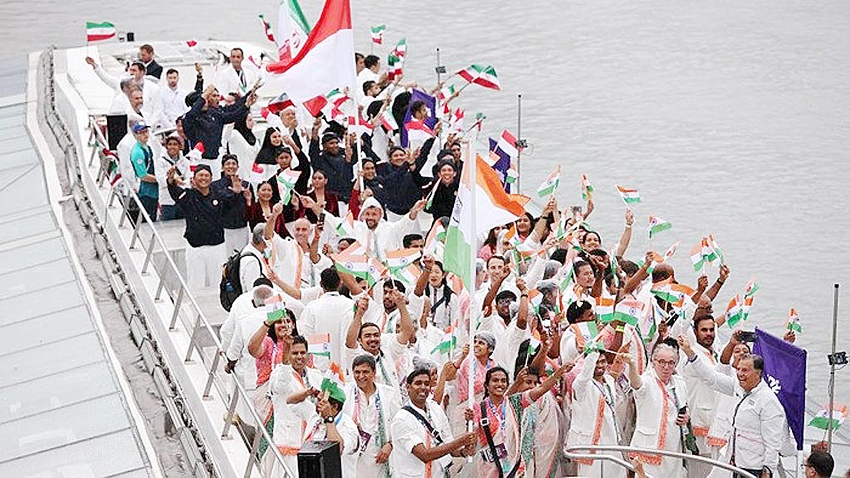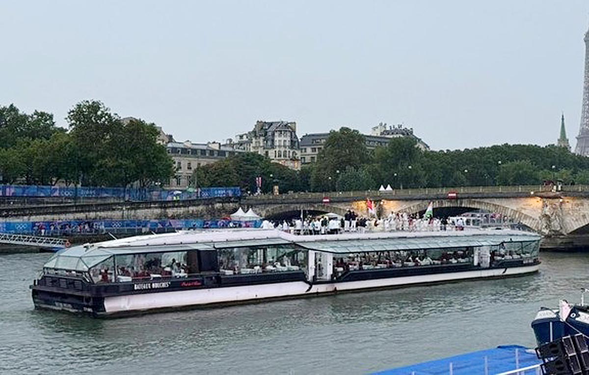 Kontingen Indonesia satu perahu dengan India dan Iran dalam Opening Ceremony Olimpiade Paris 2024. /Ist BICARAINDONESIA-Paris : Opening ceremony Olimpiade Paris 2024 berlangsung semarak, meriah dan megah di Sungai Seine, Sabtu (27/7/2024).