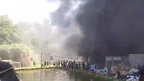 Sebuah video yang beredar, Senin (30/3/2026), menunjukkan sejumlah warga yang berada di sekitar lokasi mencoba memadamkan api dengan alat seadanya.