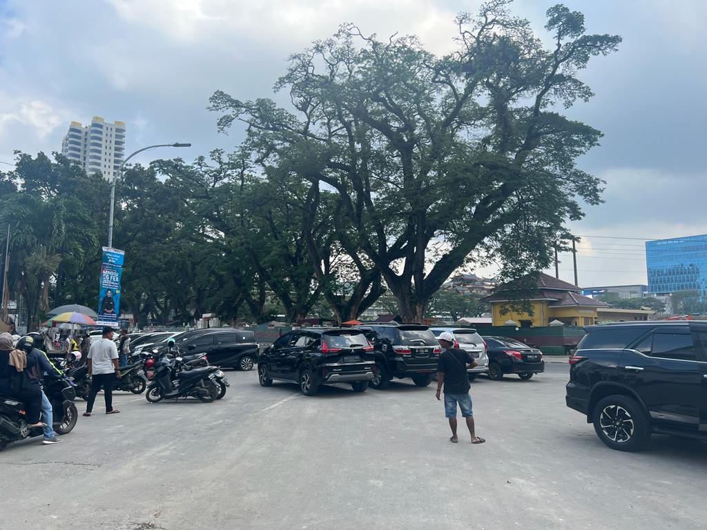 Area parkir di depan Posbloc Lapangan Merdeka Medan yang menjadi lokasi pungli petugas e-parking dengan modus mengubah jenis kendaraan/foto : dis