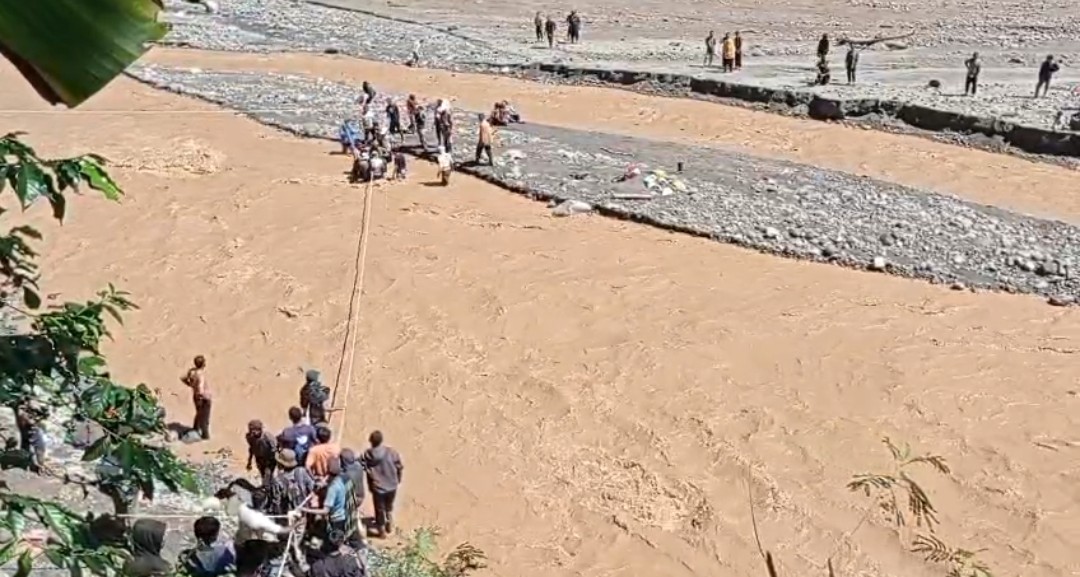 Warga Rusip Antara, Aceh Tengah yang terpaksa memanfaatkan akses tepian sungai untuk bisa keluar dari wilayah desa akibat putusnya akses jalan/foto: ist BICARAINDONESIA-Aceh Tengah: Bencana yang melanda nyaris seluruh wilayah Kabupaten Aceh Tengah, menyisakan kesedihan dan keprihatinan.