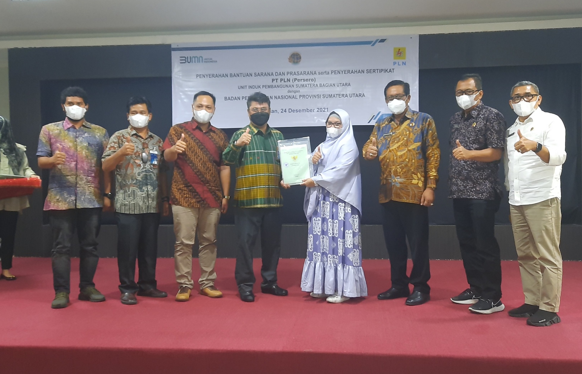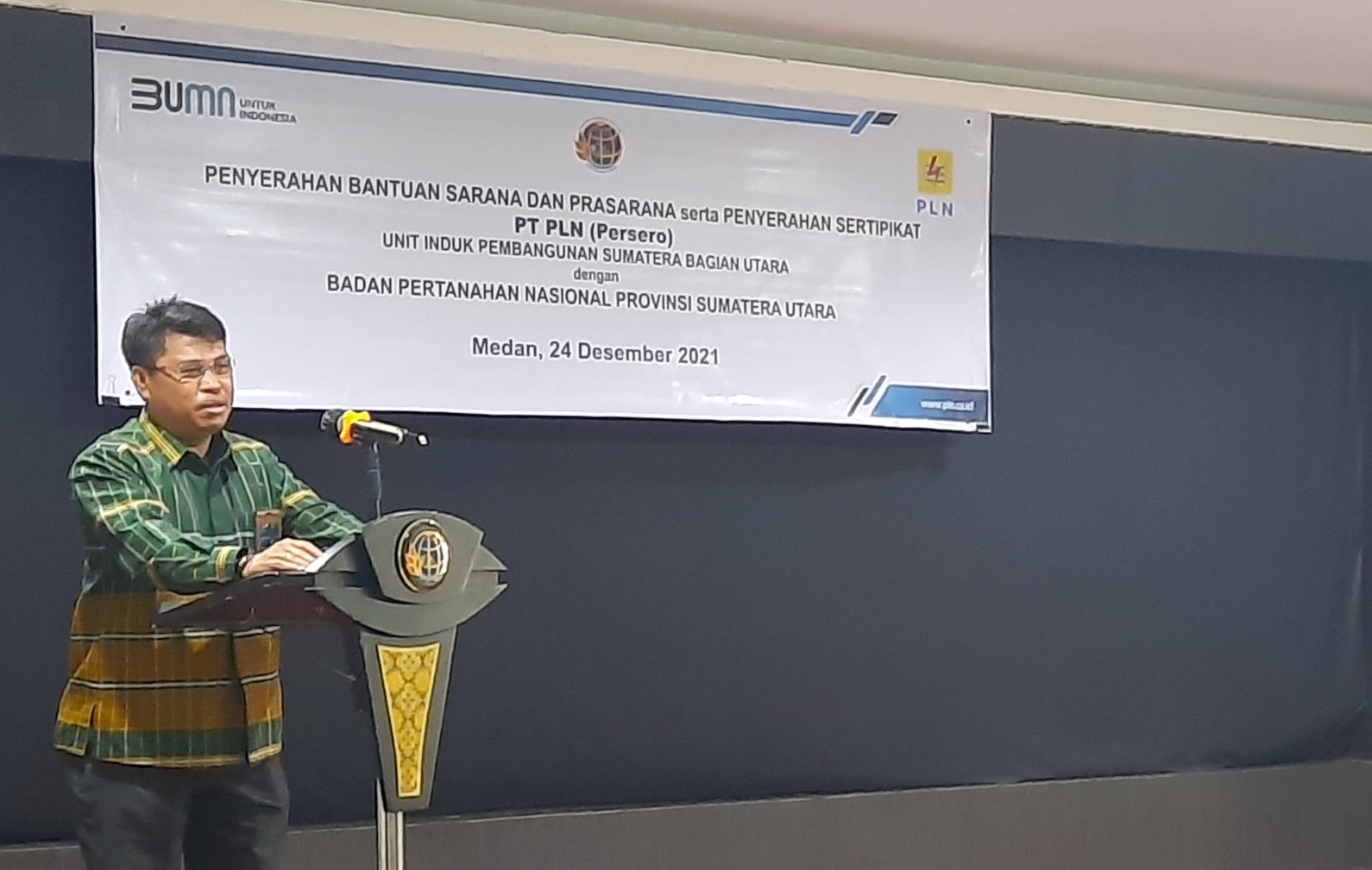 Bentuk dukungan itu langsung diserahkan GM PLN UIP Sumbagut Octavianus Padudung yang mewakili regional, kepada Kepala Kanwil BPN Sumut Dr. Dadang Suhendi dalam kegiatan bertajuk ‘Penyerahan Bantuan Sarana dan Prasarana serta Penyerahan Sertipikat’ yang berlangsung di Aula Kanwil BPN Sumut, Jalan Brigjen Katamso, Medan, Jumat (24/12/2021).