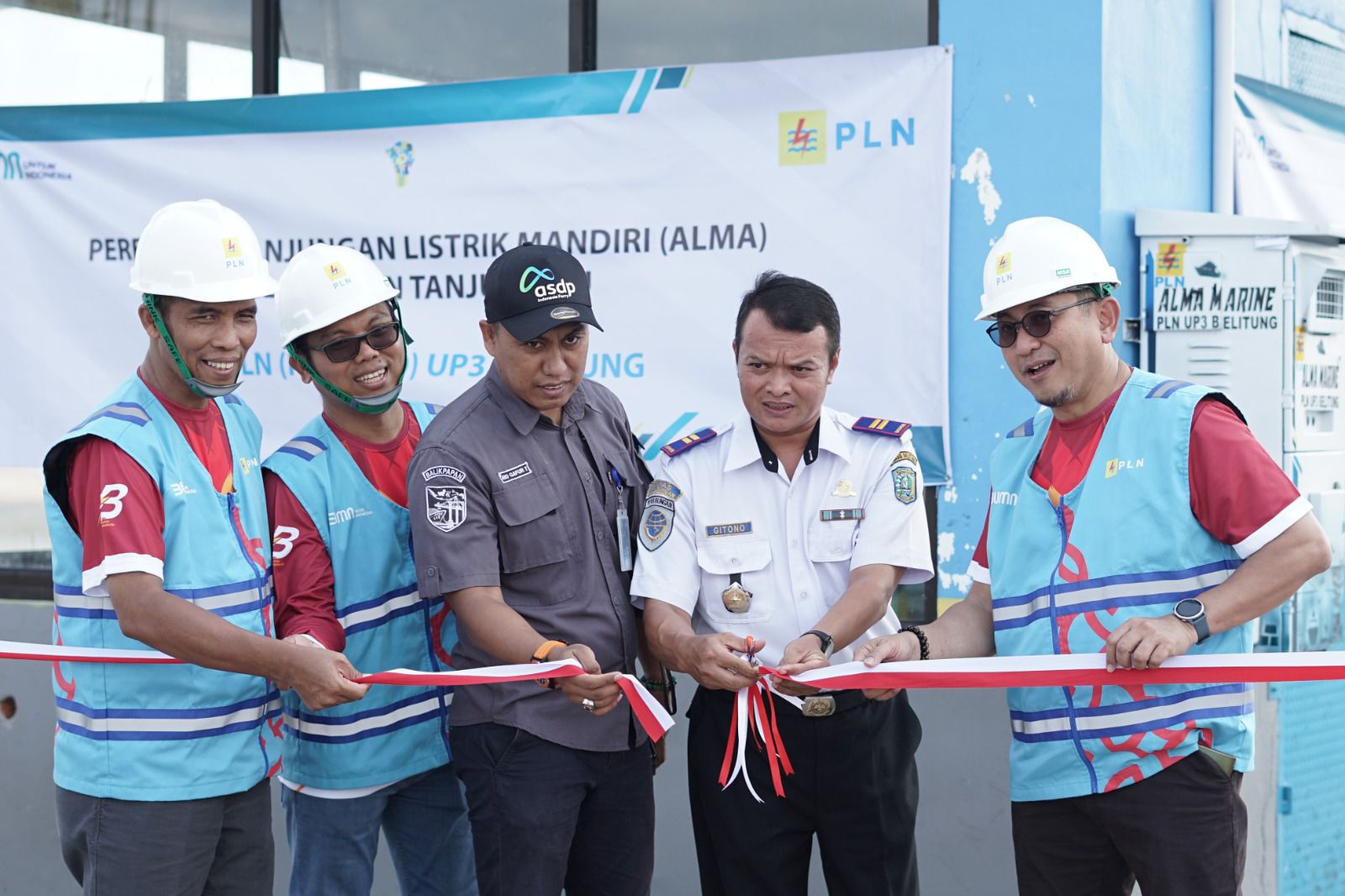 Peresmian Anjungan Listrik Mandiri (ALMA) di Bangka Belitung di Pelabuhan Tanjung Ru, Kabupaten Belitung yang ditandai dengan pemotongan pita/foto : ist BICARAINDONESIA-Belitung : Untuk pertama kalinya, PT PLN (Persero) membangun Anjungan Listrik Mandiri (ALMA) di Bangka Belitung di Pelabuhan Tanjung Ru, Kabupaten Belitung.