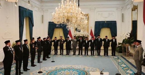 Pelantikan tersebut digelar di Istana Merdeka, Jakarta. Prabowo didampingi Menko Polkam Djamari Chaniago, Menko Kumham Imipas Yusril Ihza Mahendra, Panglima TNI Jenderal Agus Subianto, Kapolri Jenderal Listyo Sigit Prabowo, dan Wakapolri Komjen Dedi Prasetyo.