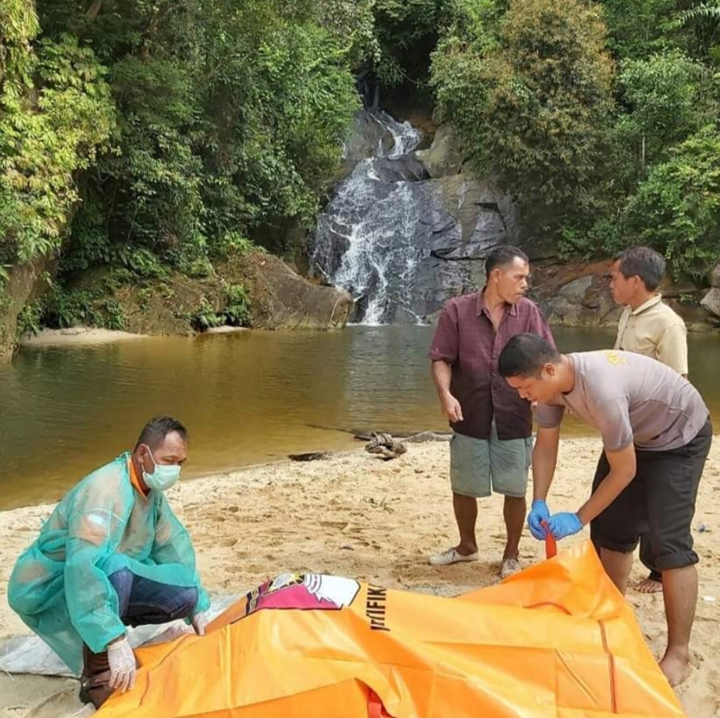 Dijelaskan Sinurat, ketika ditemukan, posisi mayat terendam didalam air, terletak dekat batu besar dalam keadaan miring ke kanan dan kepala mayat ke arah aliran air terjun. Usai olah TKP, personel kemudian mengevakuasi mayat dari dalam air ke darat.